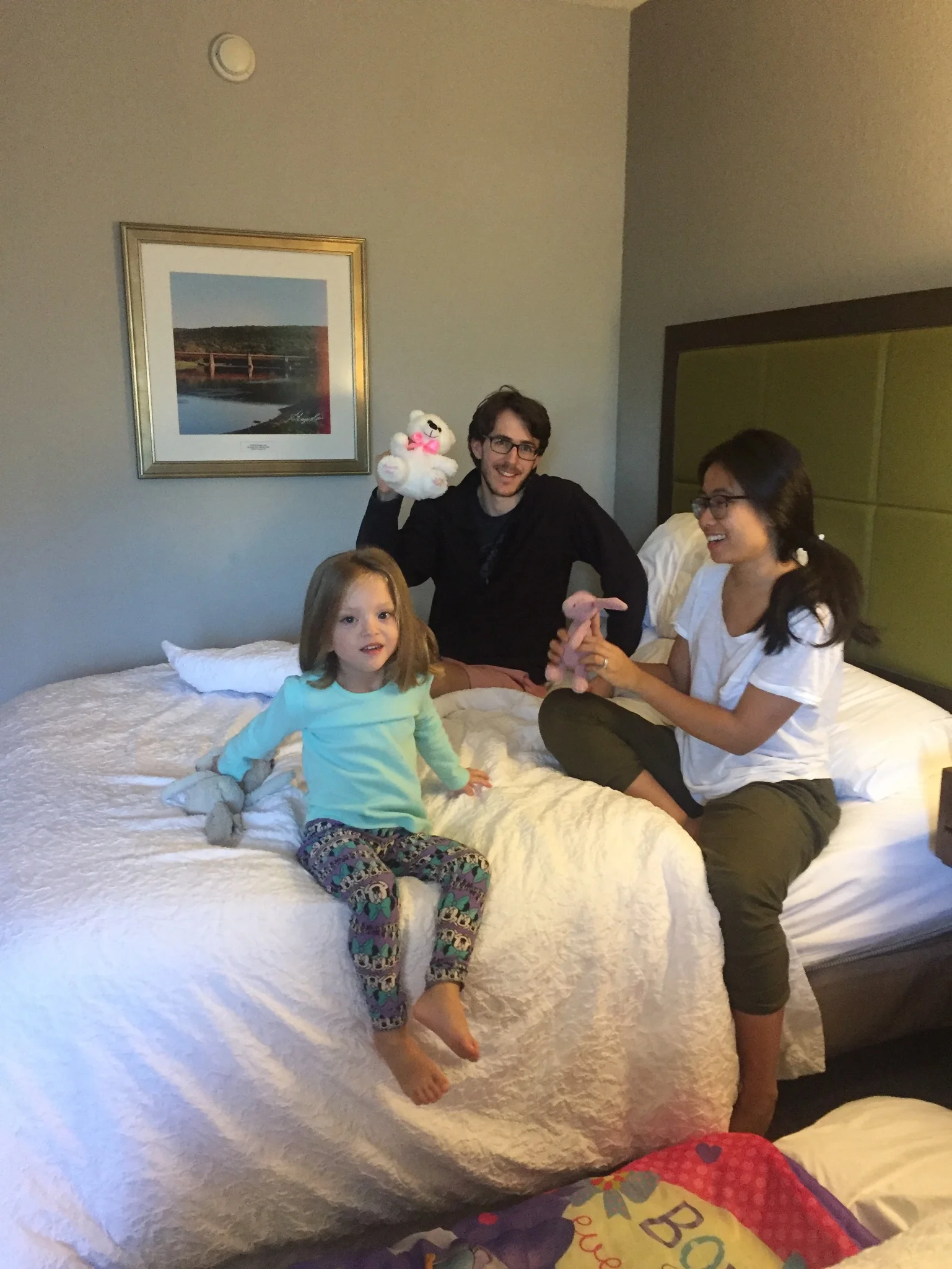 Being silly in the hotel with Uncle Dan and Aunt Sharon