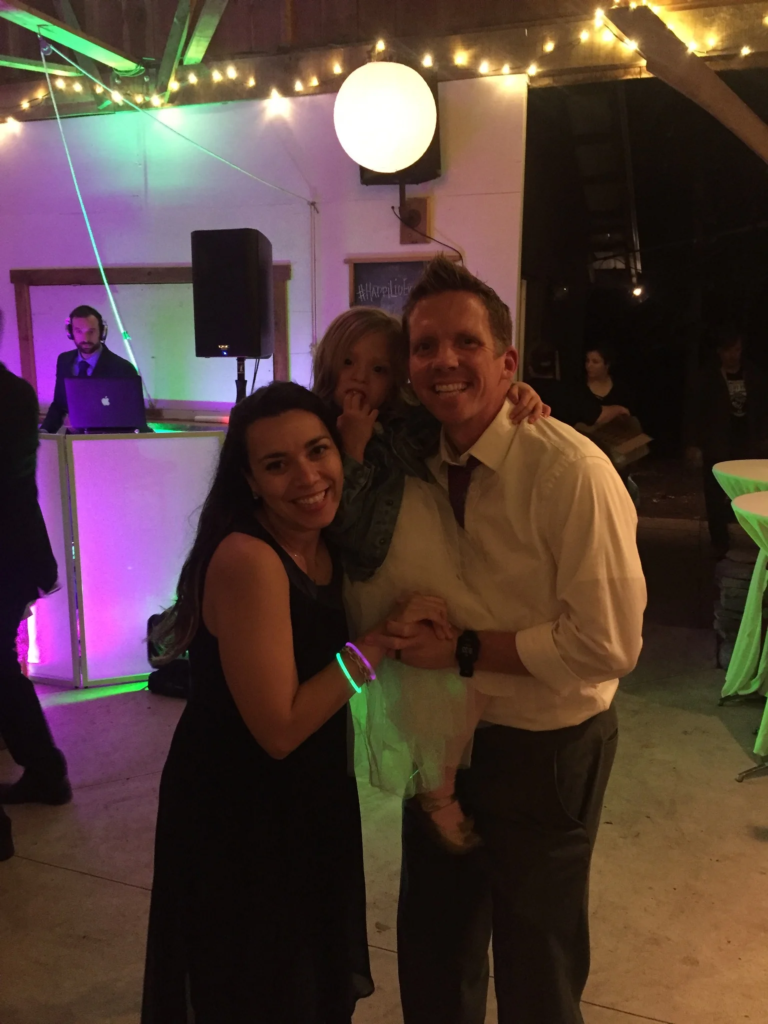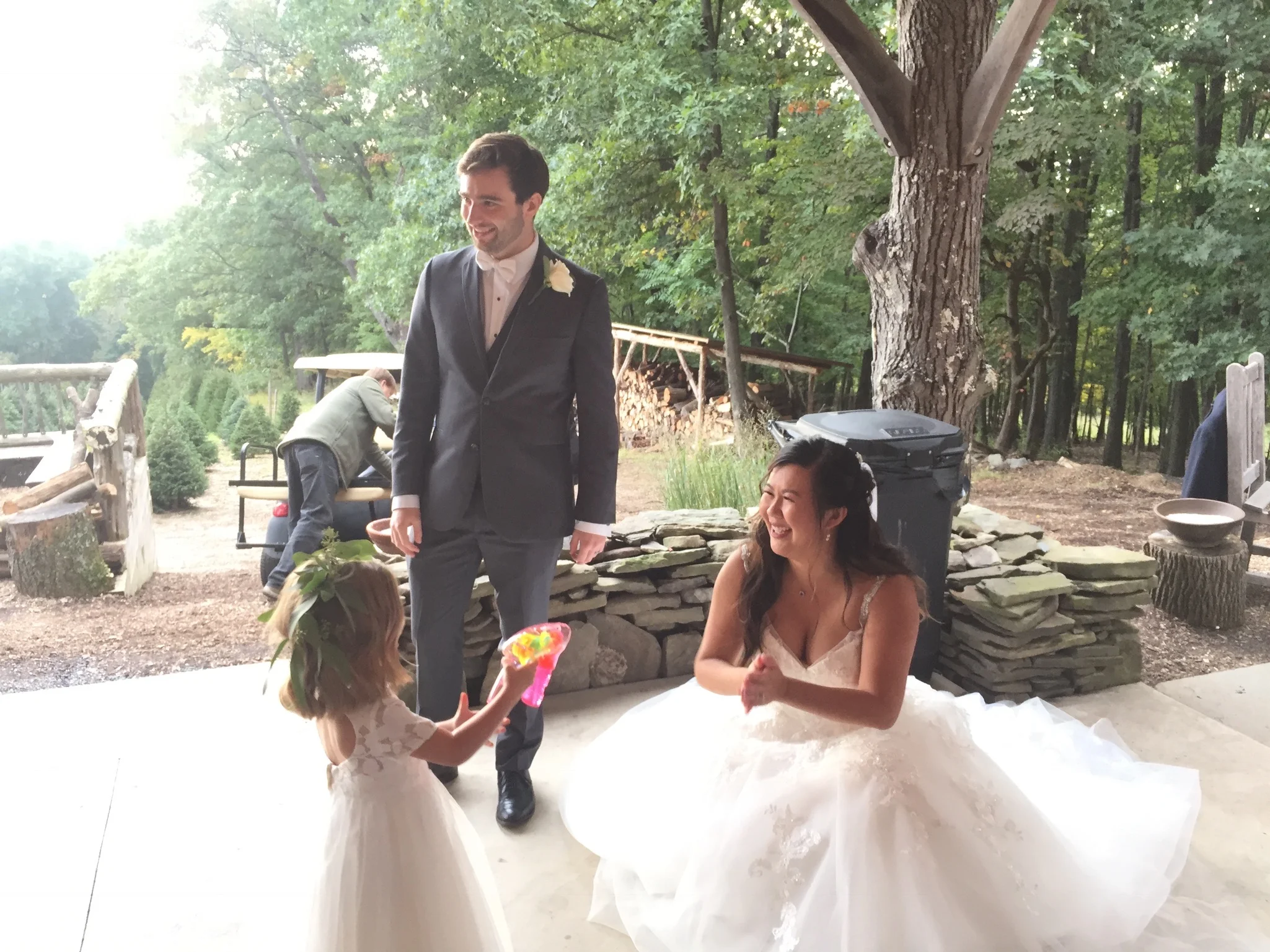 Lucie with the bride and groom and more bubbles. Since the wedding, Lucie has talked about Grace and Michael getting married pretty much every day.