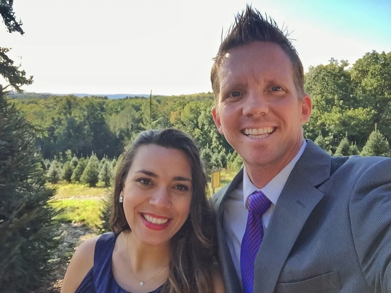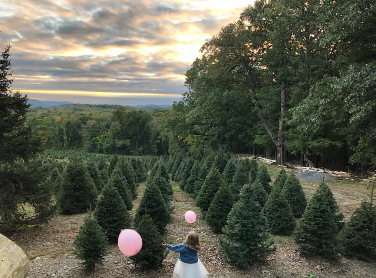 On our way to our friend Grace’s wedding at a Christmas Tree farm!